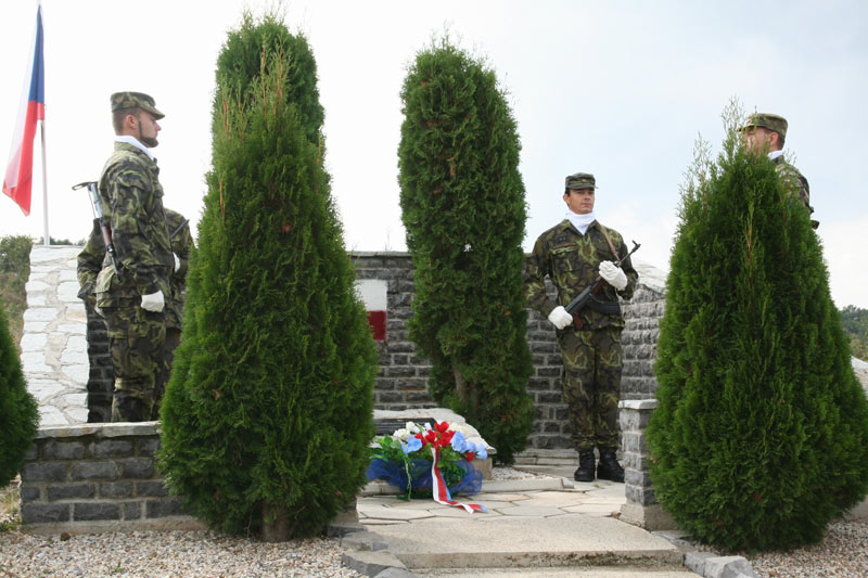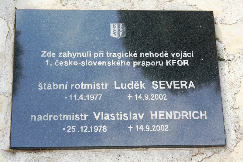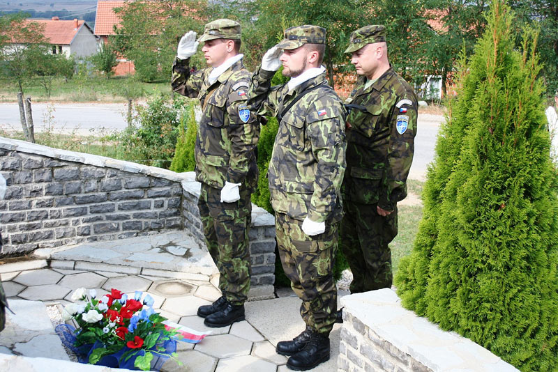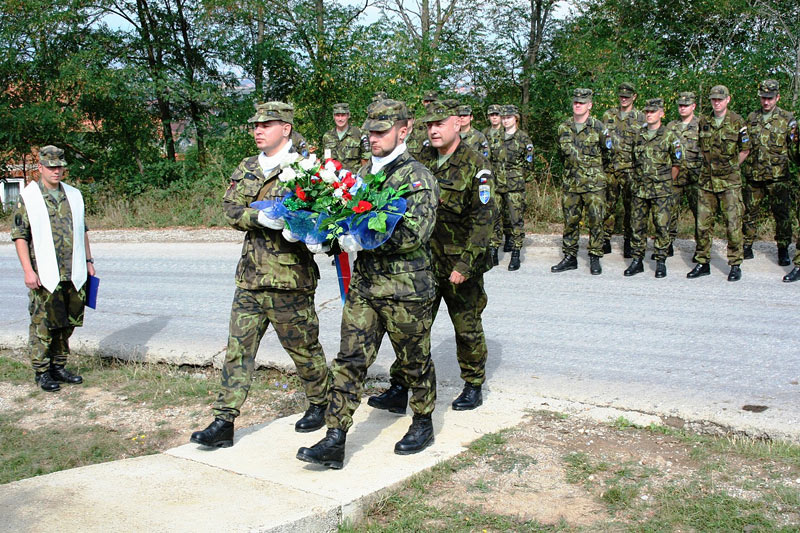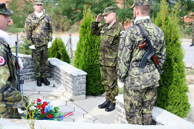 Příslušníci 15. kontingentu AČR v silách KFOR se sešli ke krátké vzpomínce na dva příslušníky 1. česko-slovenského praporu KFOR - štábního rotmistra Luďka Severu a nadrotmistra Vlastislava Hendricha - kteří před sedmi lety nedokončili svou misi.