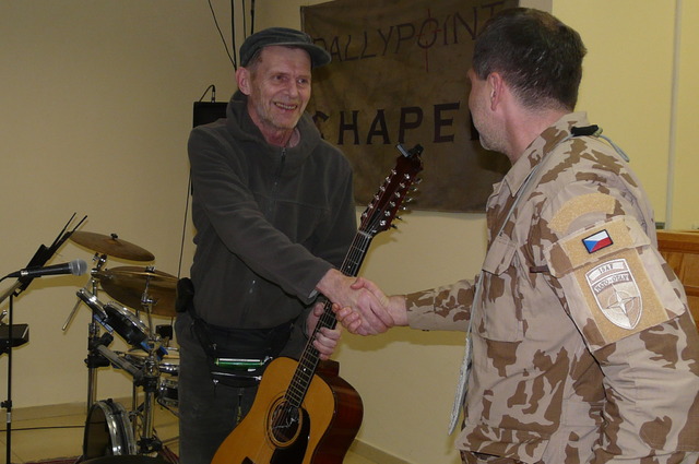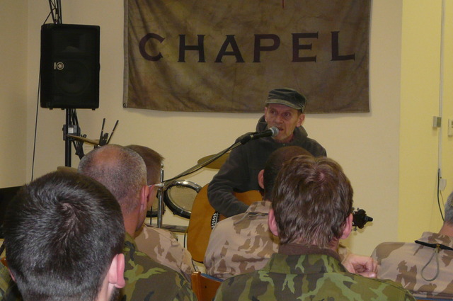 Vojákům zpestřil volnou chvíli svým originálním vystoupením herec Jiří Schmitzer