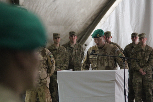 Velitel 4. SR BAF kapitán Marek Jeřábek pronesl závěrečnou řeč celé ceremonie