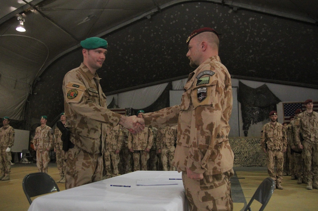 Před předáním operačního úkolu byly vojákům 3. SR BAF uděleny medaile za službu v misi v Afghánistánu