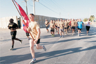 Jednotka 6. strážní roty běžela ve tvaru pod vlajkou 43. výsadkového praporu v Chrudimi.