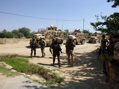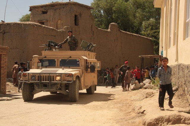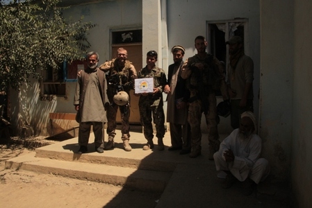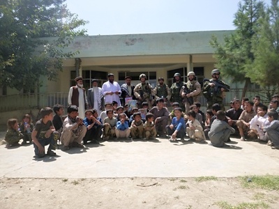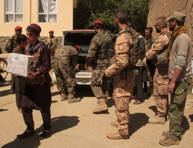 Afghánská národní armáda (ANA) přiváží pomoc do dívčí školy