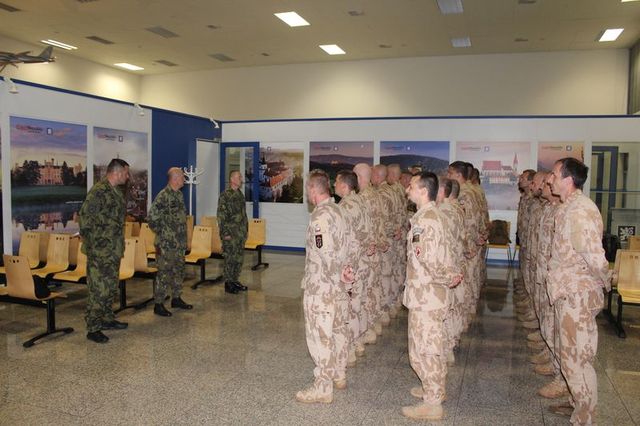 První kroky výsadkářů mířily do příletové haly k přivítání s velitelem 4. brigády