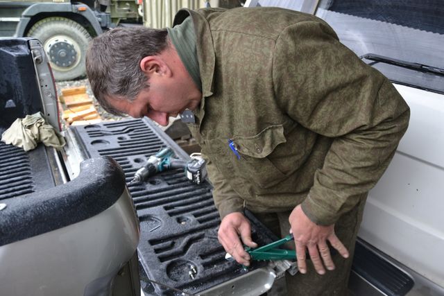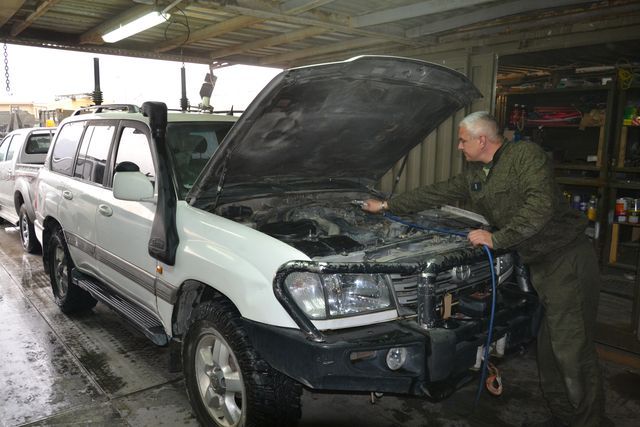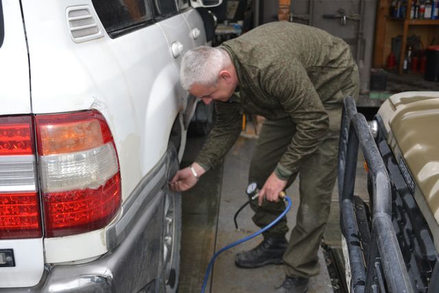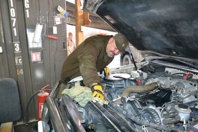 14.12.2016 Voják provádí nezbytnou údržbu pneumatik
