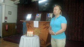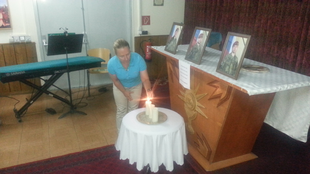 Nora Jurkovičová, zástupkyně velvyslance ČR v Afghánistánu, zapaluje svíci za tři mrtvé české vojáky