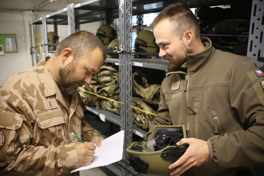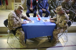 Podepisování dokumentů k předání operačního úkolu během ceremonie.