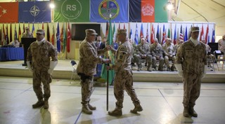 Symbolické předání operačního úkolu ve formě praporu úkolového uskupení.