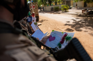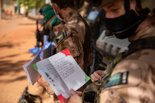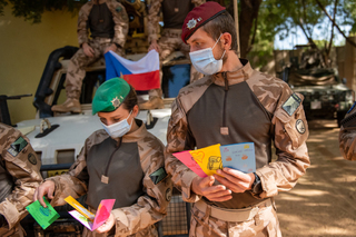 Vojákům a vojákyním sloužícím na základně Koulikoro udělaly letos radost originální přání od dětí