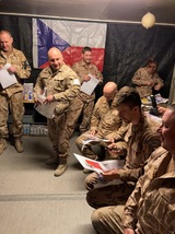 Na klubovně českého úkolového uskupení se na chvíli potkali vojáci s kolegy z polního chirurgického týmu.