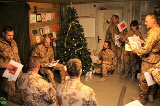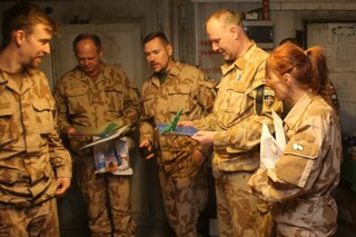 Přání si vojáci rozdávali mezi směnami. Někteří se s nimi stihli i vyfotit, aby je jako poděkování dětem poslali zpět