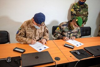 Slavnostní nástup malijských spojařů při příjezdu velitele mise EUTM generála Ridzáka