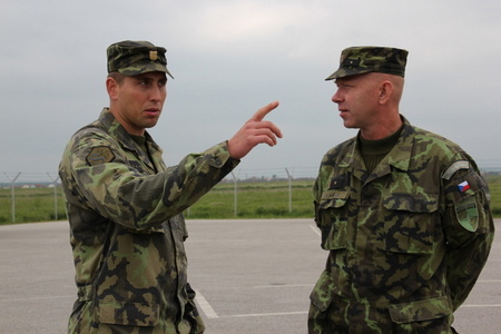Nadporučík Martin Zelenka informuje zástupce velitele kontingentu o situaci