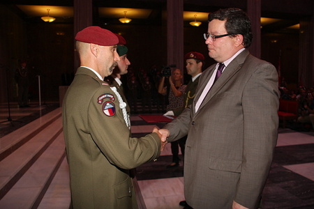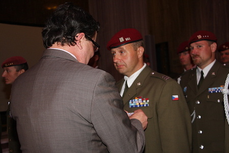 20.5.2011 Alexandr Vondra dekoruje jednoho z vojáků