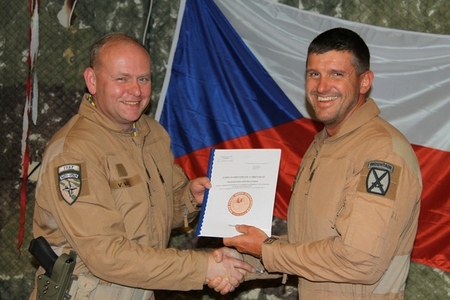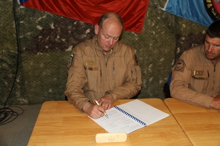 Pplk. Karel Krejčiřík, velitel 5. vrtulníkové jednotky, při podpisu předávacího protokolu