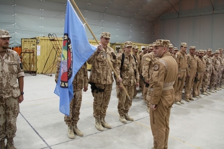 Velitel 6. vrtulníkové jednotky plk. Václav Valeš před převzetím praporu HELI UNIT, TF HIPPO