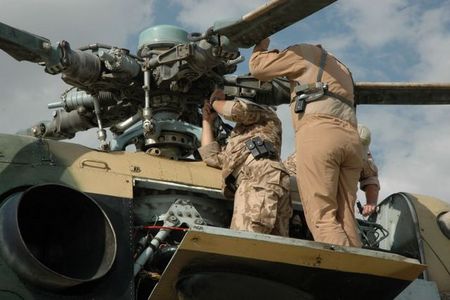 27.9.2011 Čeští instruktoři opravují vrtulník
