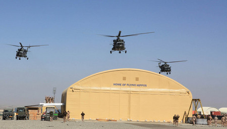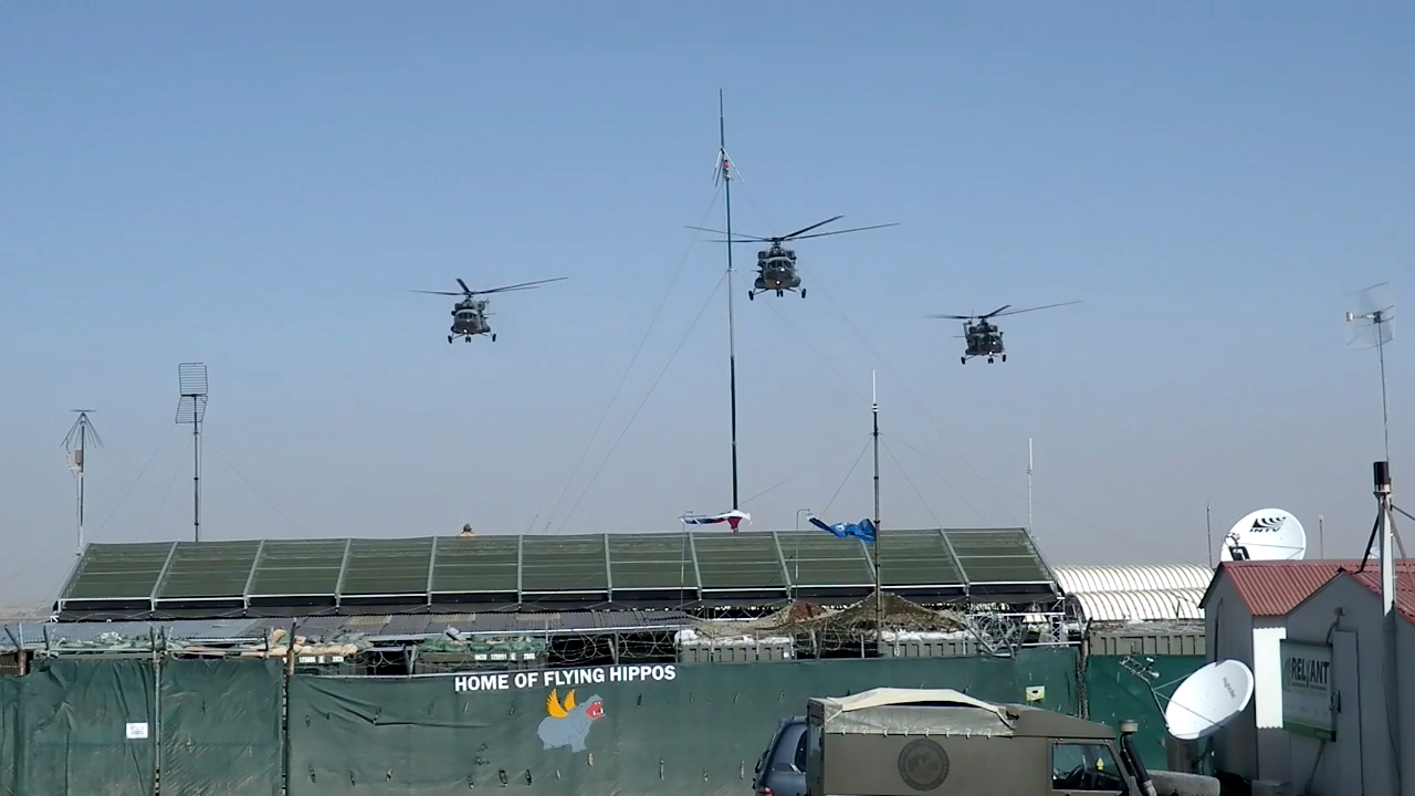 Poslední průlet vrtulníků nad Šaranským takticko operačním centrem