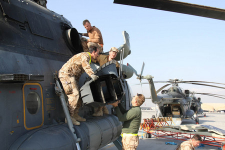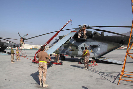 Poslední průlet vrtulníků nad mobilním opravárenským pracovištěm