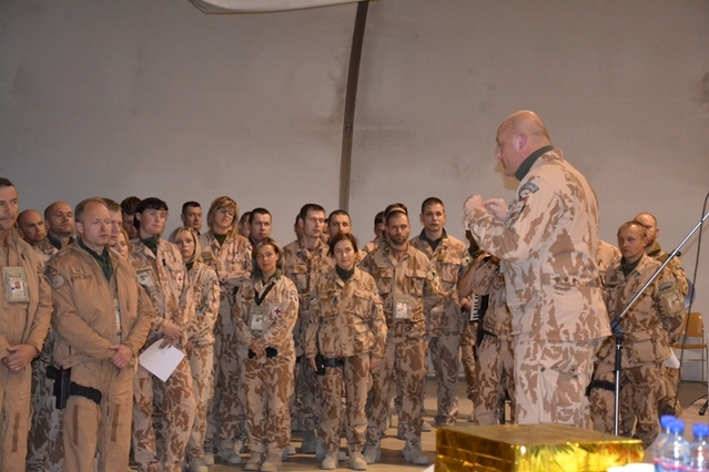 Klidné svátky na základně SHANK popřál vojákům také velitel 53. bPzEB plk. Josef Havlík