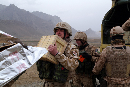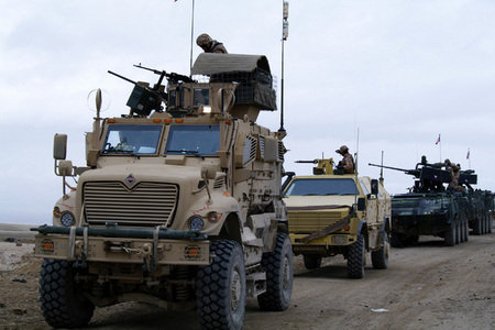 Kolona vozidel českého PRT, v popředí 3x MRAP, za nimi DINGO a nejblíže dvojice PANDURů