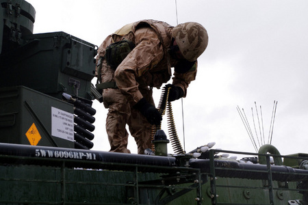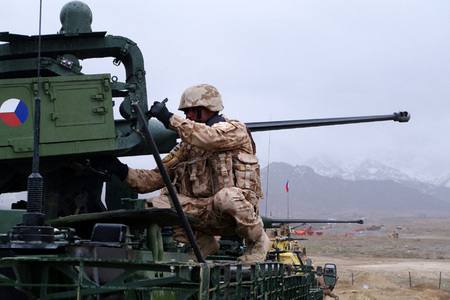 Příslušníci jednotky připravují na palebné čáře vozidla ke střelbě z lafetovaných zbraní