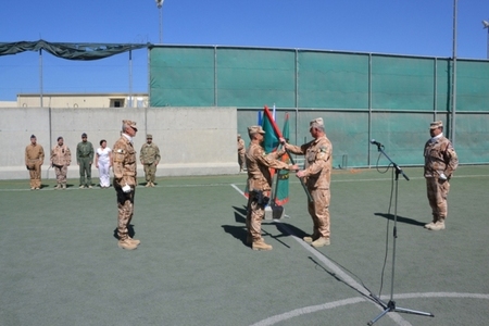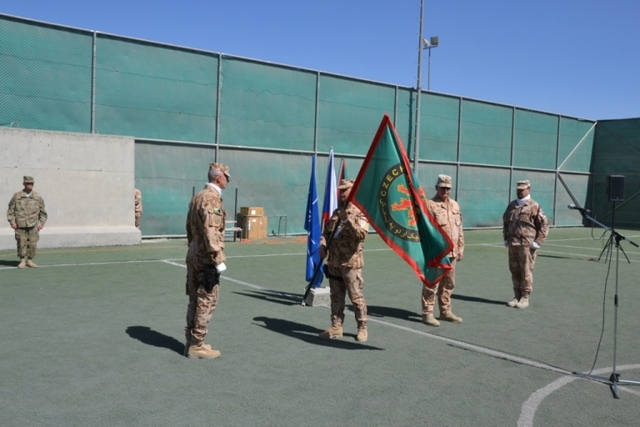 5.6.2012 Plk. Štochl přebírá prapor ÚU AČR ISAF od plk. Kožiaka