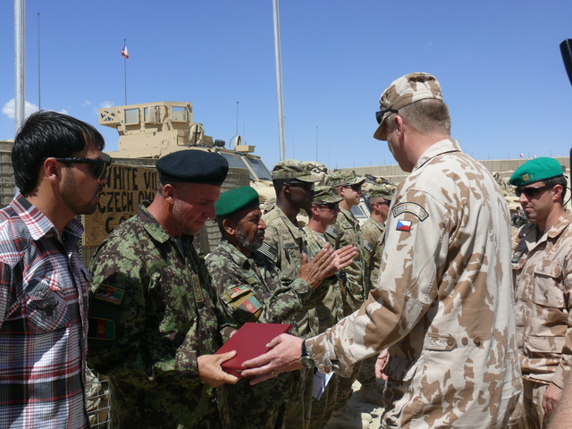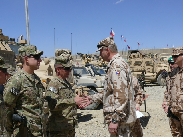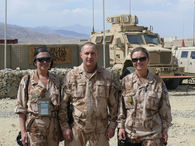 Zleva: komunikační manažerka NGŠ AČR Mira Třebická, velitel 4. jednotky OMLT podplukovník Martin Botík, vrchní psycholožka AČR kapitánka Helena Sováková