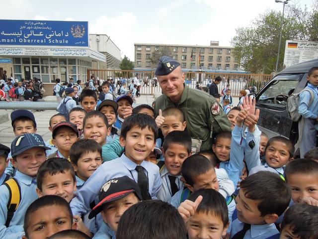 Plukovník Štefánik po rozdání dárků školákům v Kábulu