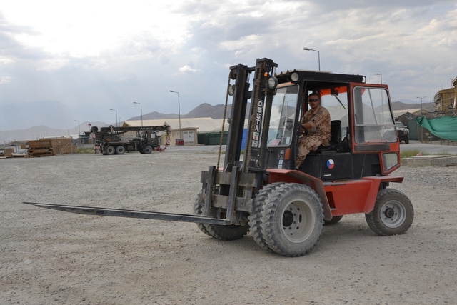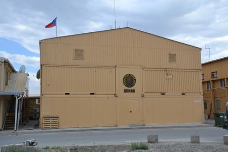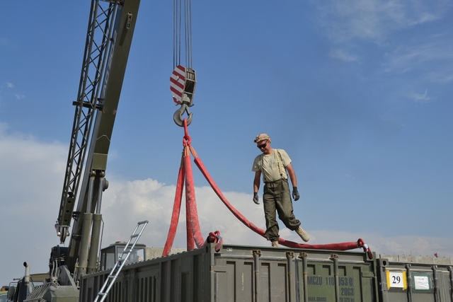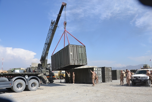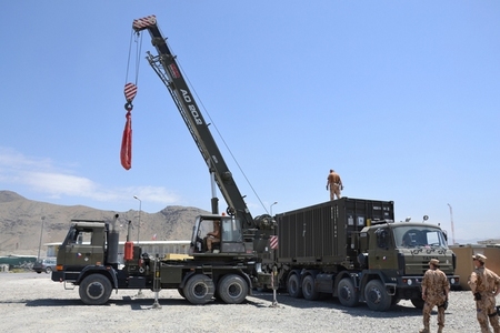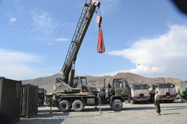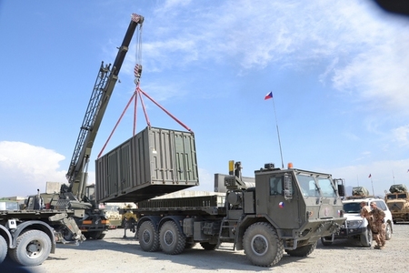 A nákladní tatra přivezla další kontejner s materiálem, na který už vojáci čekají