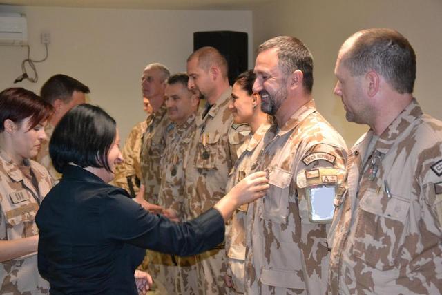 Vojáci ze 7. AAT před dekorováním medailemi NATO