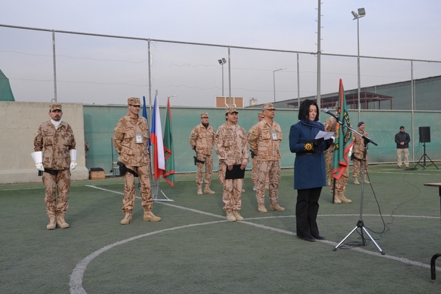 Slavnostní nástup 5. a 6. úkolového uskupení AČR ISAF k předání operačního úkolu - projev zástupkyně velvyslance ČR v Afghanistanu Štěpánky Litecké
