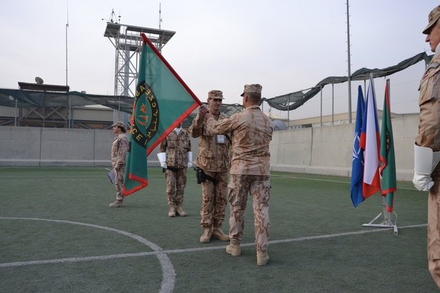 Slavnostní nástup 5. a 6. úkolového uskupení AČR ISAF k předání operačního úkolu - prapor je v rukou nového velitele