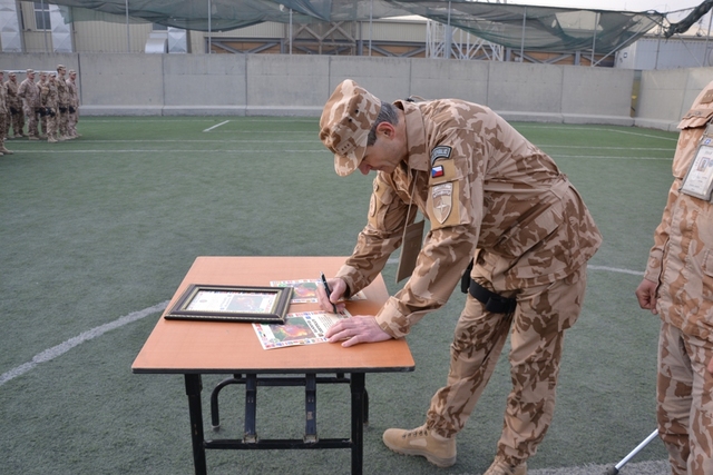 Slavnostní nástup 5. a 6. úkolového uskupení AČR ISAF k předání operačního úkolu - podpis protokolu o předání operačního úkolu
