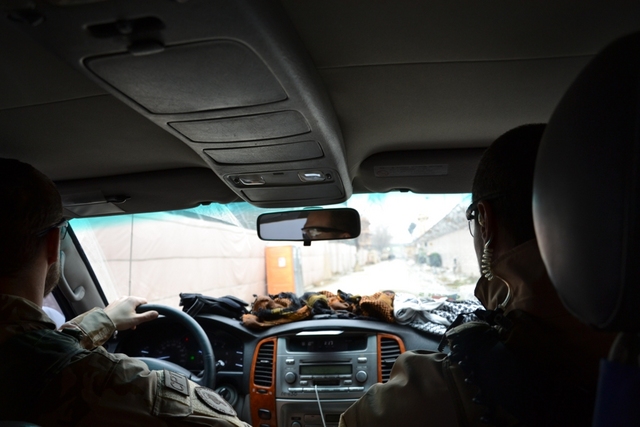 Převoz vojáků k volbám na českou ambasádu zkomplikovalo v sobotu dopoledne i nepříznivé počasí - hustě sněžilo
