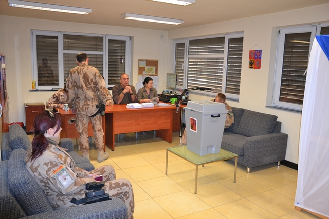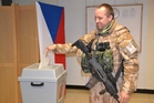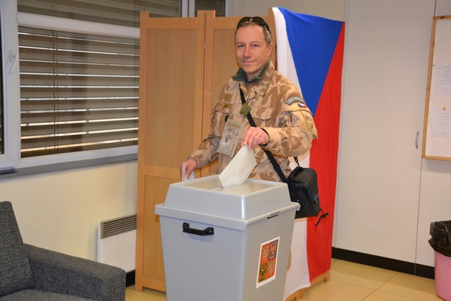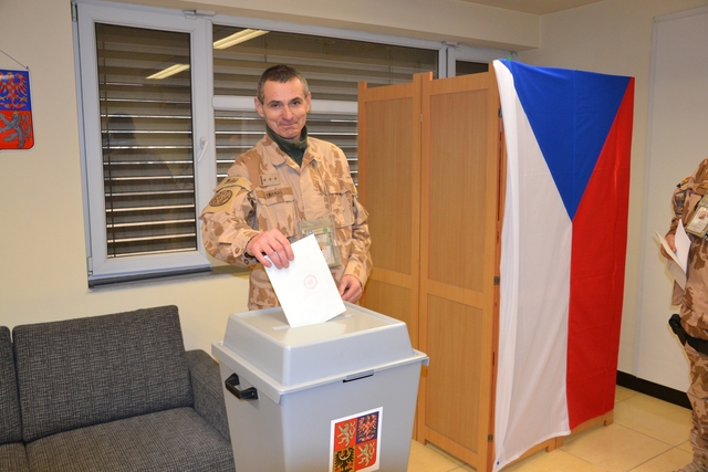 Velitel 6. ÚU plukovník gšt. Ing. Jaroslav Trakal odevzdává svůj hlas v 1. kole presidenstských voleb