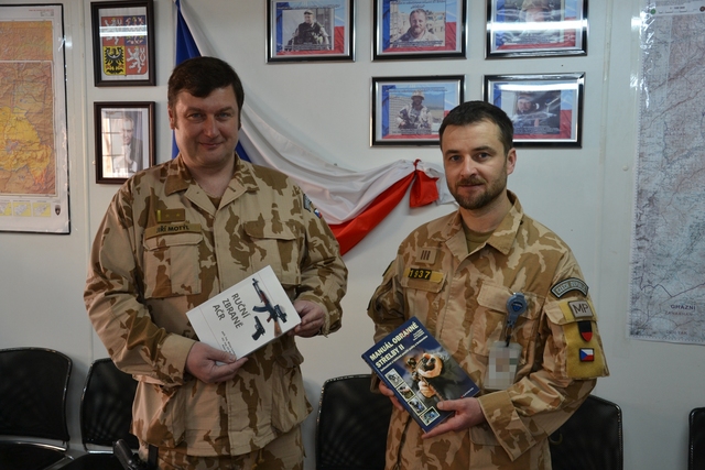 Podplukovník Motýl věnoval praporčíku Ondřeji D. knihu s vojenskou tematikou a na oplátku dostal publikaci Manuál obranné střelby II i s věnováním od spoluautora