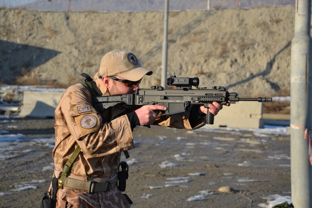 Instuktor střelby a spoluautor knihy Manuál obranné střelby II praporčík Ondřej D. při výcviku