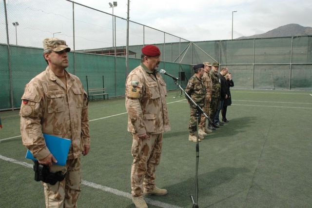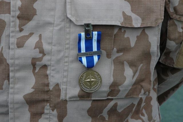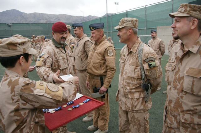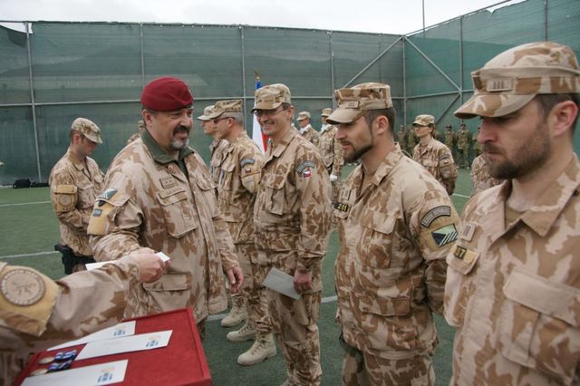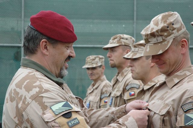 Medaili předává velvyslanec ČR v Afghánistánu Miroslav Kosek, zde chemikům z CBRN