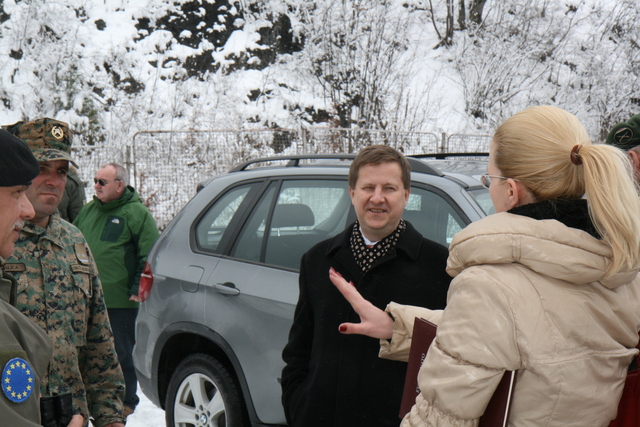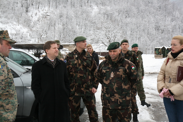 Velvyslanec České republiky v Bosně a Hercegovině Tomáš Szunyog při společné návštěvě s EUFOR v muničním skladu Krupa